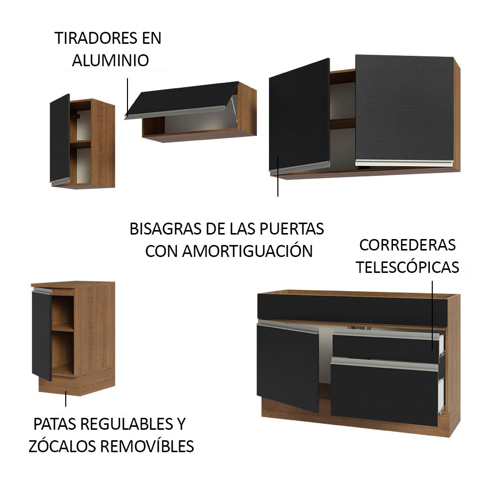 Combo completo de Cocina Madesa Glamy 240cm Marrón/Negro 07