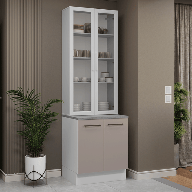 Kit Bajo Mesada + Cristalero 70cm Blanco/Crema Agata Madesa 02