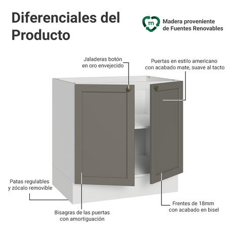 Bajo Mesada de Cocina 80 x 60 cm 2 Puertas (Sin Mesada)...