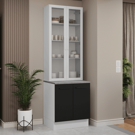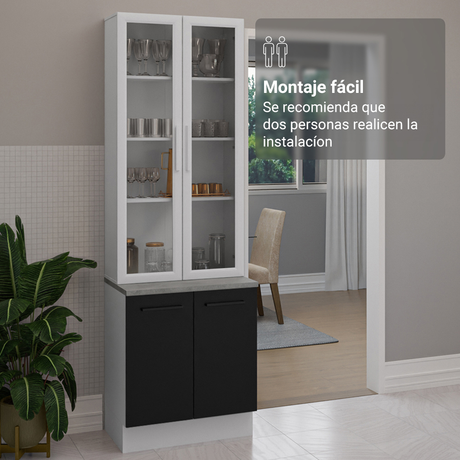 Kit Bajo Mesada + Cristalero 70cm Blanco/Negro Agata Ma...