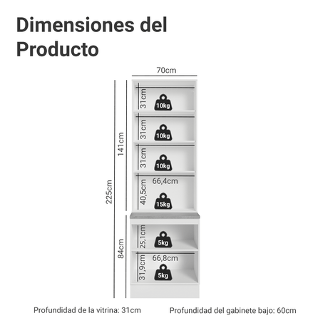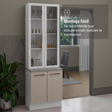 Kit Bajo Mesada + Cristalero 70cm Blanco/Crema Agata Ma...