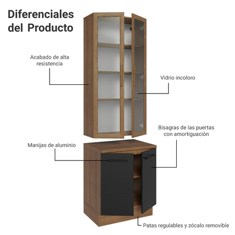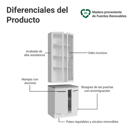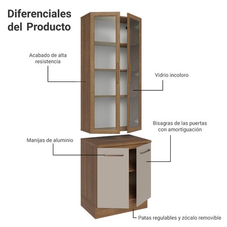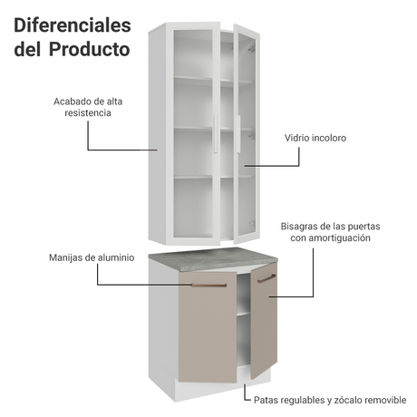 Cristalero con bajo mesada de Cocina 70cm Madesa Agata ...