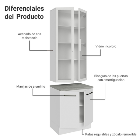 Kit Bajo Mesada + Cristalero 70cm Blanco Agata Madesa 0...