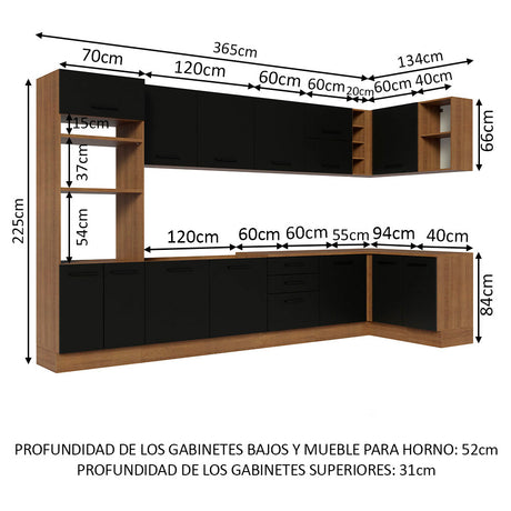 Combo completo de Cocina 290cm Marrón/Negro Agata Mades...