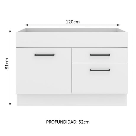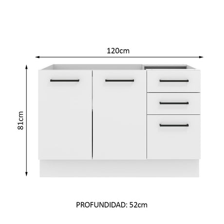9x de $27.060,00 sin interés$243.53999Precio unitario /AgotadoBajo Mesada 120 cm x 60 cm, 3 Cajones 2 Puertas Agata M...
