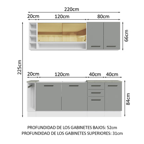 Combo completo de Cocina Modular Agata Madesa 220cm MB