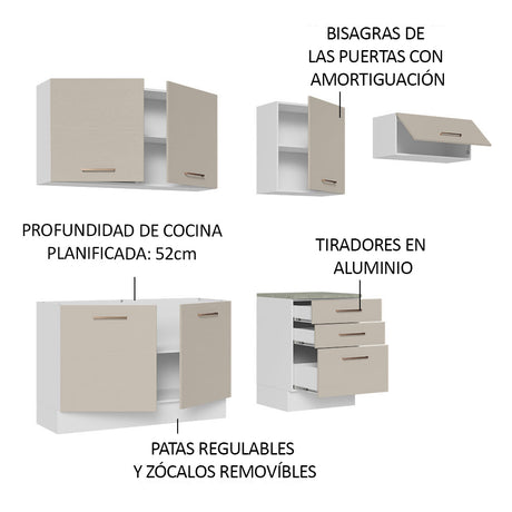 Combo completo de Cocina 240 cm x 60 cm Blanco Agata 02