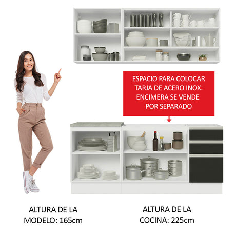 Combo de Cocina 180cm Madesa Glamy Blanco/Negro 06