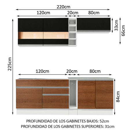 Combo completo de Cocina 220cm Marrón/Blanco Glamy Made...