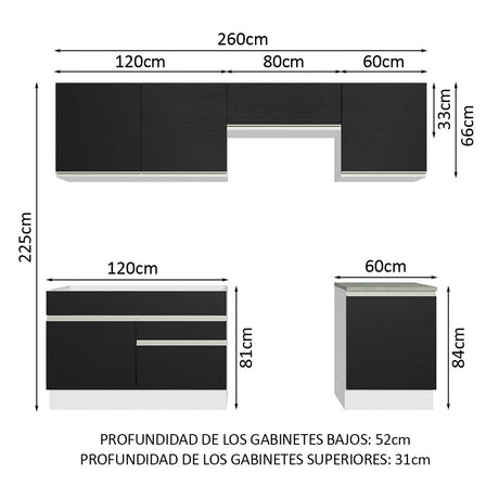 Combo completo de Cocina Glamy Madesa 260cm Blanco/Negr...