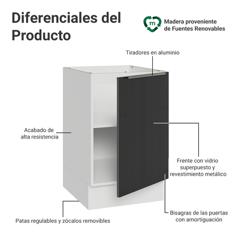 Bajo Mesada 50cm 1 Puerta (Sin Mesada) Blanco/Negro Lux...