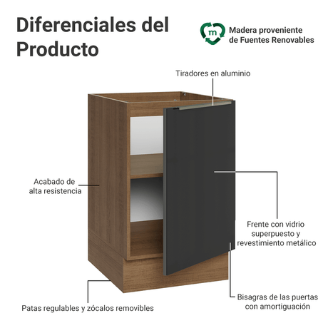 Bajo Mesada 50cm 1 Puerta (Sin Mesada) Marrón/Negro Lux...