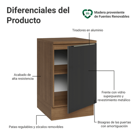 Bajo Mesada 50m 1 Puerta (Con Mesada) Marrón/Negro Lux ...