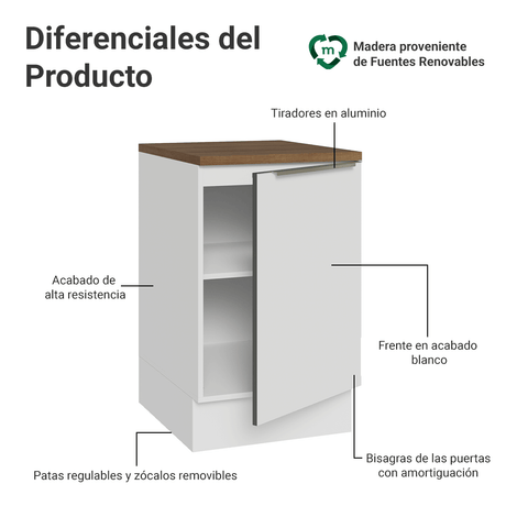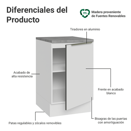 Bajo Mesada 50cm 1 Puerta (Con Mesada) Blanco Aterciope...