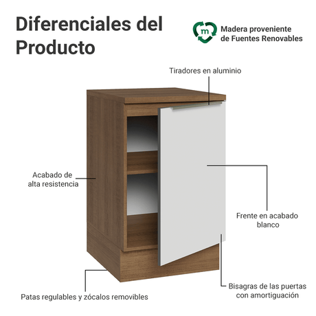 Bajo Mesada 50cm 1 Puerta Blanco Mesada Marrón Lux Made...