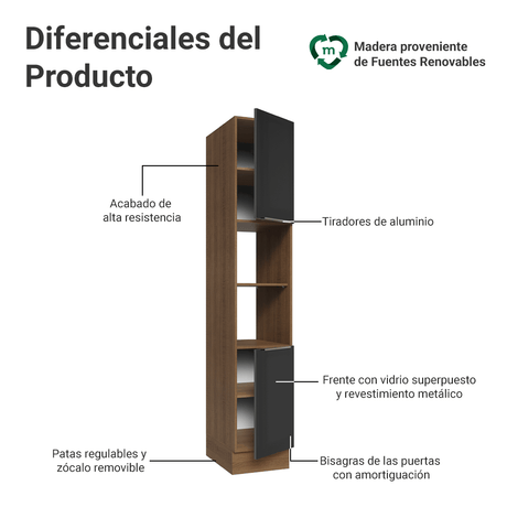 Despensero 40cm 2 Puertas e 2 Nichos Marrón/Negro Lux M...
