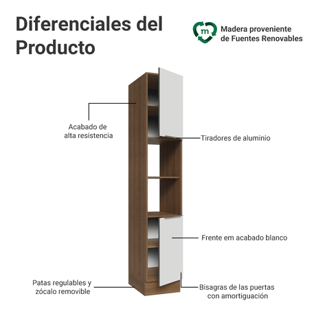 Despensero 40cm 2 Puertas e 2 Nichos Marrón/Blanco Ater...