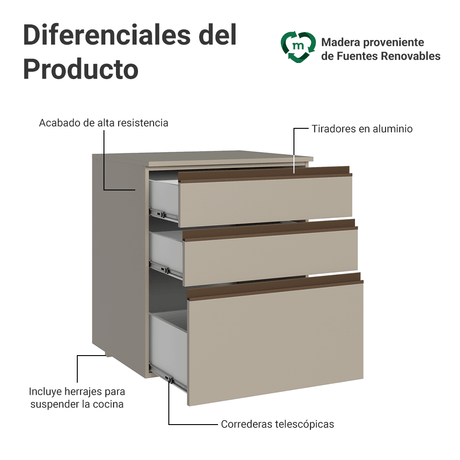 Además, puedes elegir entre gabinetes superiores, suspendidos o con acabados como: