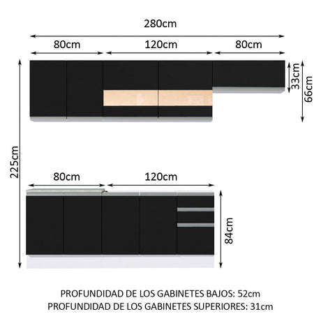 Combo completo de Cocina Madesa Glamy 280cm Blanco/Negr...