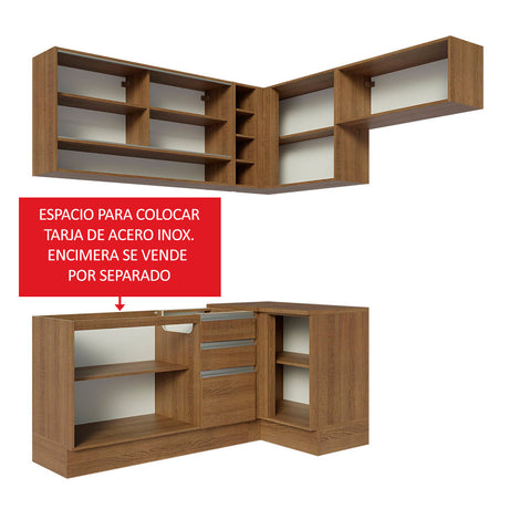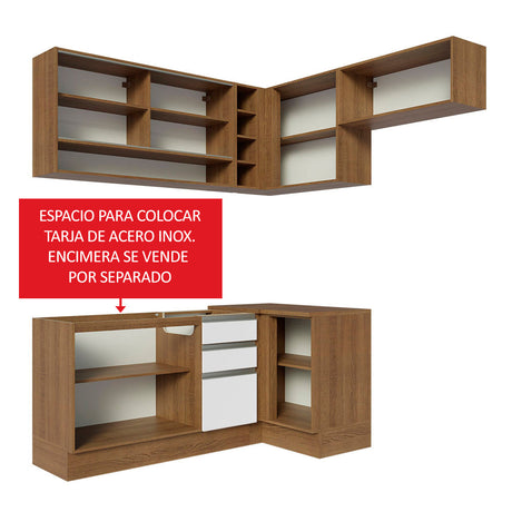 Combo completo de Cocina Esquinera 349cm Marrón/Blanco ...