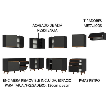 Combo completo de Cocina Esquinera 472cm Reims Negro 01