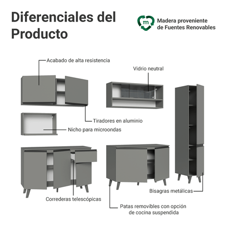 Combo completo de Cocina 240 cm Flotante Gris Nice Made...