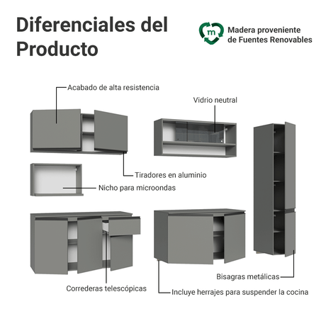 Combo completo de Cocina 280 cm Flotante Gris Nice Made...