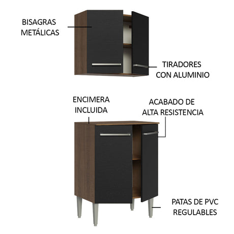 Cocina Compacta 120cm Marrón/Negro Life