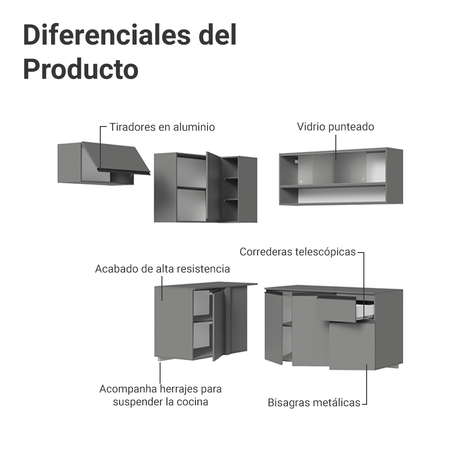 Combo completo de Cocina Esquinera 265 cm Flotante Gris...