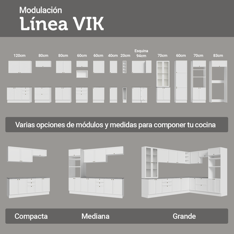 9x de $203.428,00 sin interés13% OFF$1.830.85200$2.126.42900Precio unitario /AgotadoCocina Esquinera 399 cm Vik Blanco/Gris 01