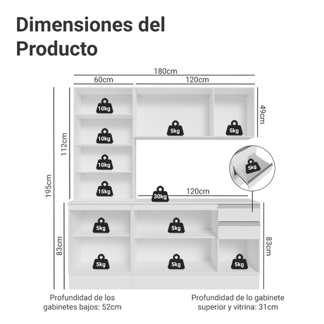9x de $118.693,33 sin interés$1.068.23999Precio unitario /AgotadoCombo de Cocina 290 cm Smart 100% MDF Blanco 01