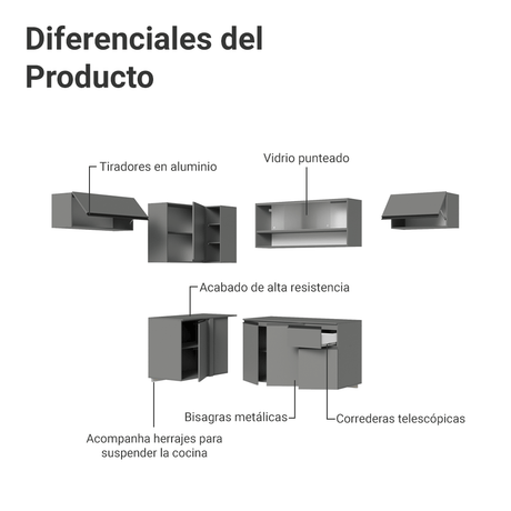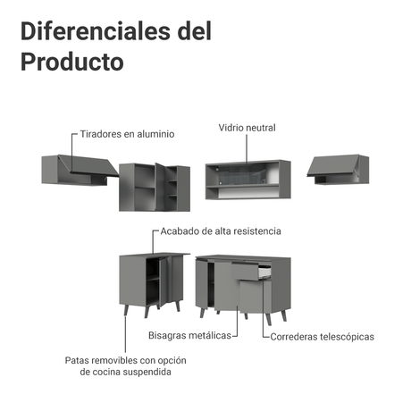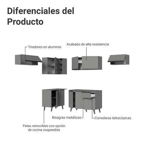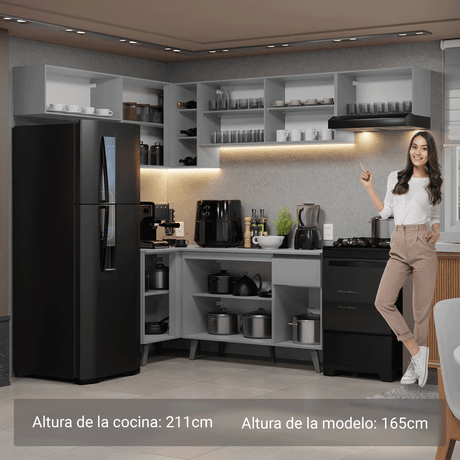 Combo Cocina esquinero Flotante 405cm Gris Nice Madesa ...