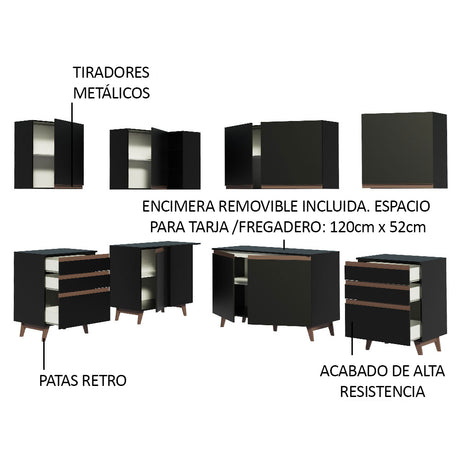 Combo completo de Cocina Madesa Glamy 290cm Marrón/Negr...