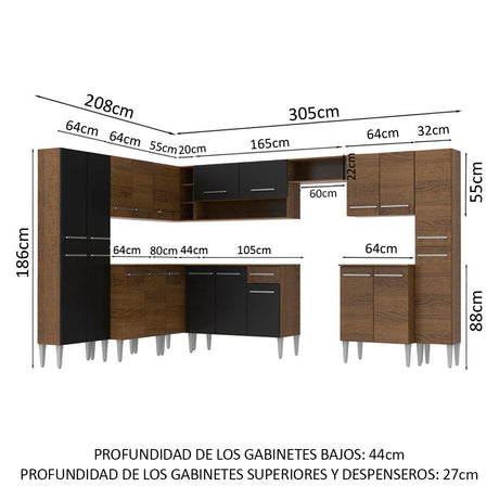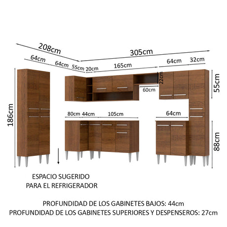 Combo completo de Cocina 270cm Marrón Glamy Madesa 13