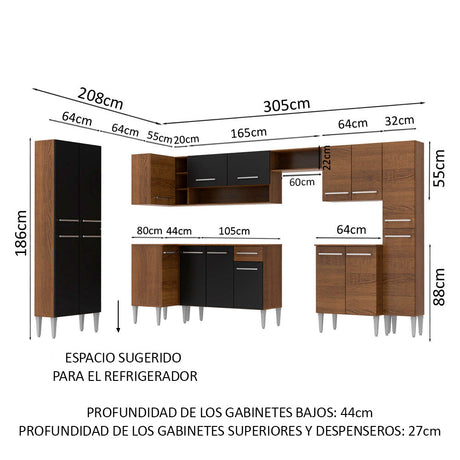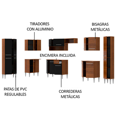 Combo completo de Cocina Madesa Glamy 270cm Marrón/Negr...