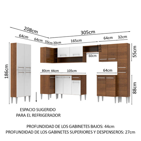 Combo completo de Cocina 270cm Marrón/Blanco Glamy Made...