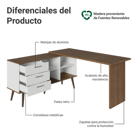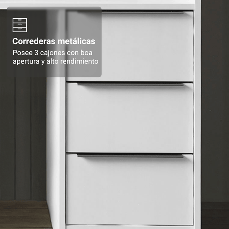 Escritorio Mesa de Estudos esquinero 3 Cajones Blanco/M...