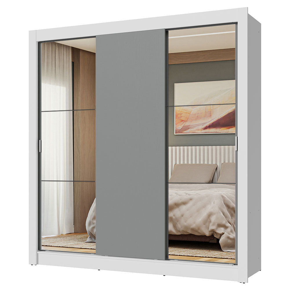 Placard Matrimonial 3 Puertas Corredizas con Espejo Blanco/Gris Nobre