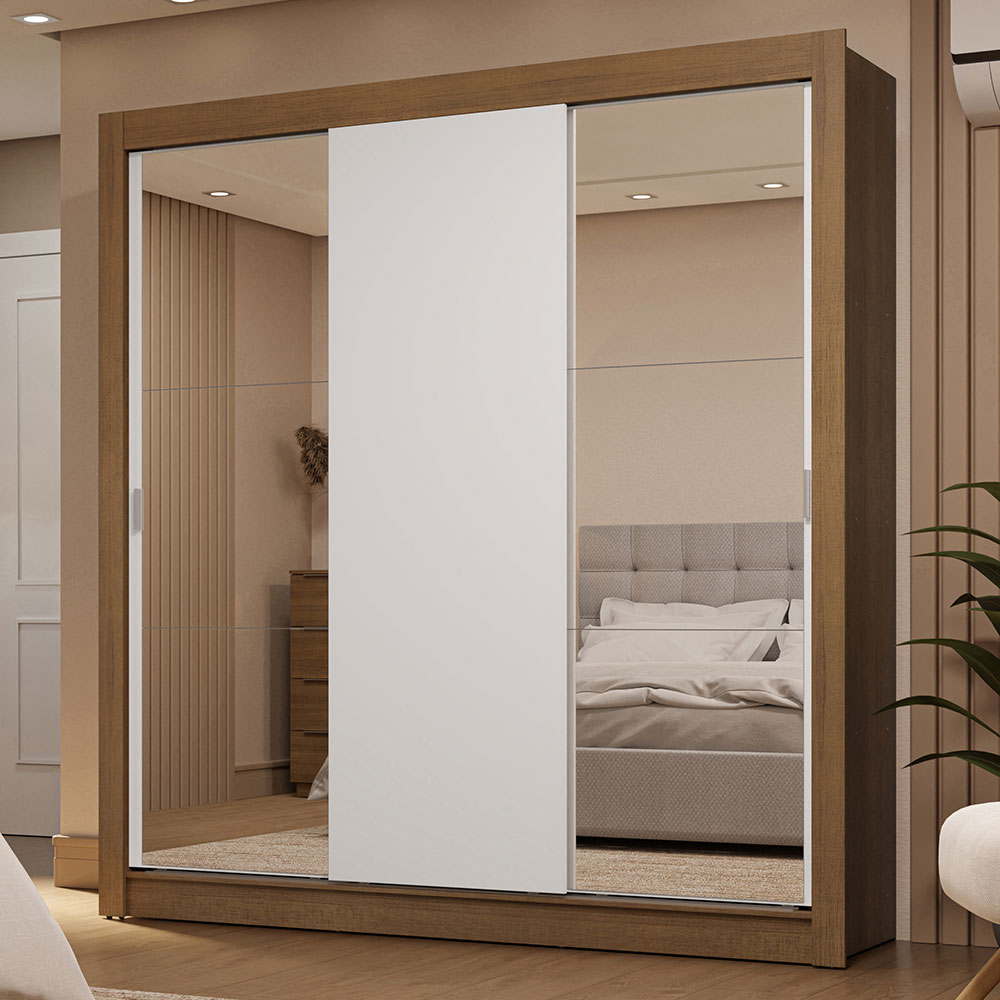 Placard Matrimonial 3 Puertas Corredizas con Espejos 2 Cajones Marrón/Blanco Sublime