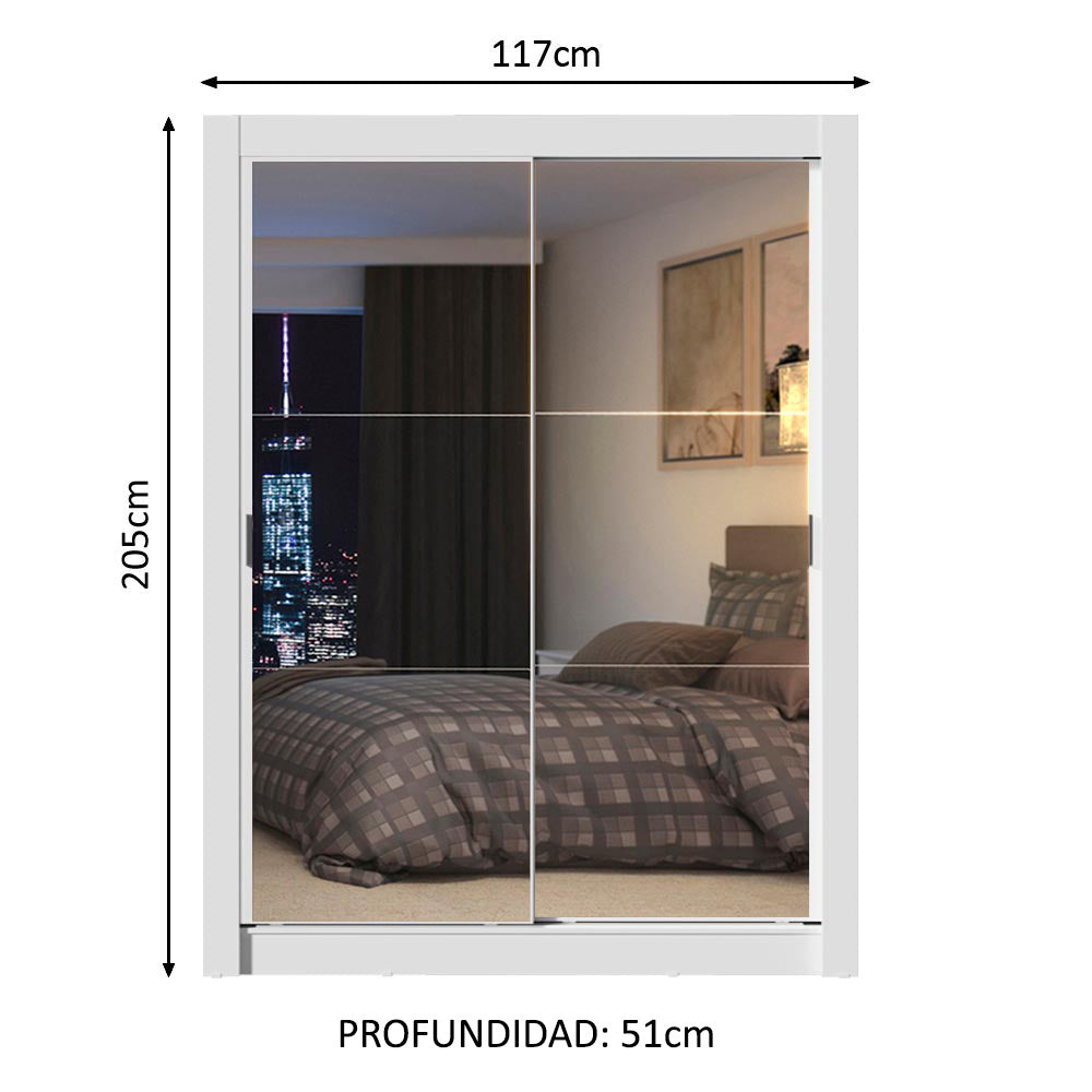 Placard Soltero Denver 2 Puertas Corredizas 2 con Espejo Blanco