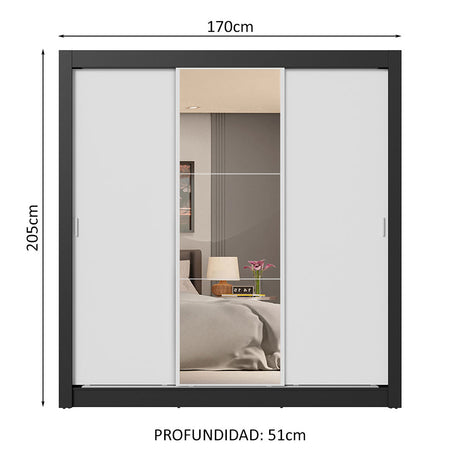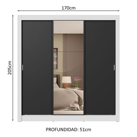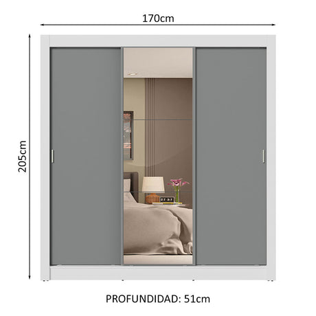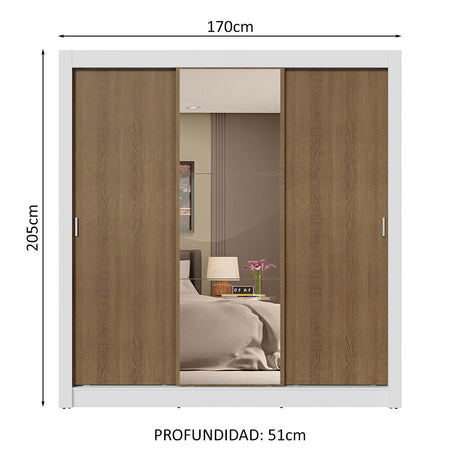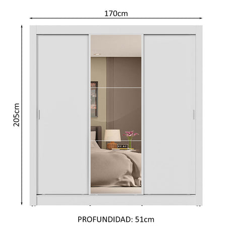 Placard Matrimonial 3 Puertas Corredizas con Espejo Bla...