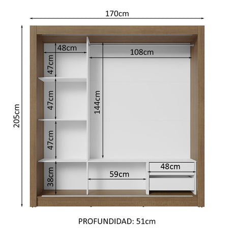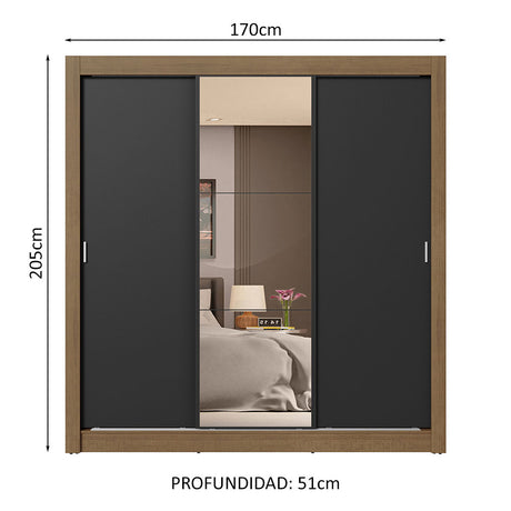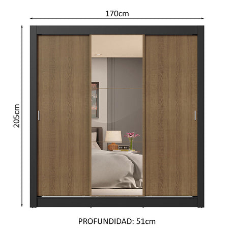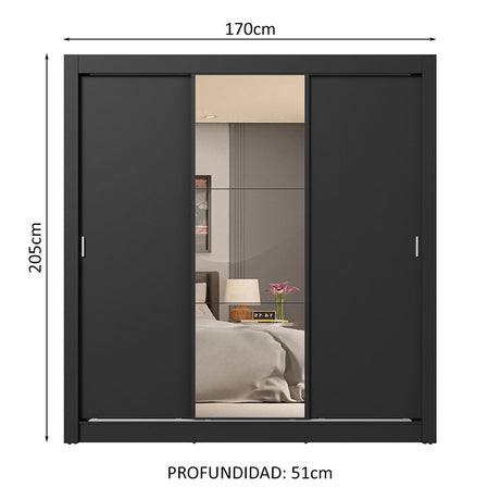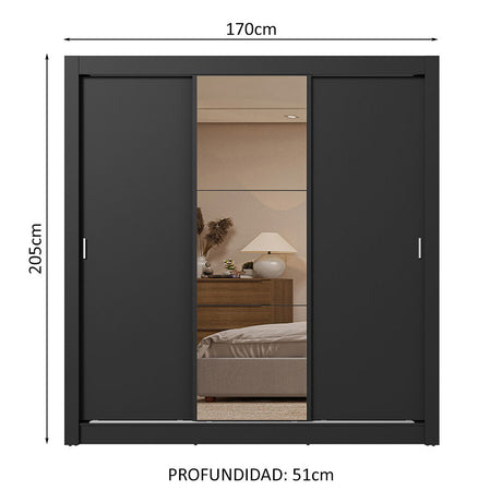 Placard Matrimonial 3 Puertas Corredizas con Espejo 2 C...