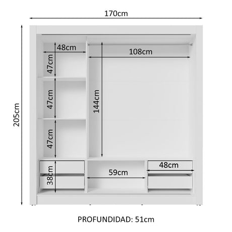 Placard Matrimonial 3 Puertas Corredizas con Espejo 4 C...
