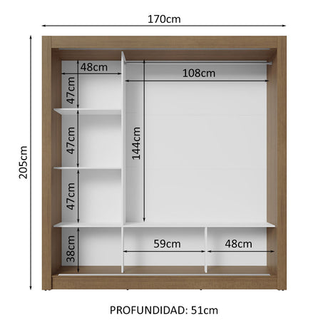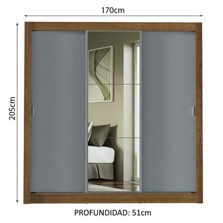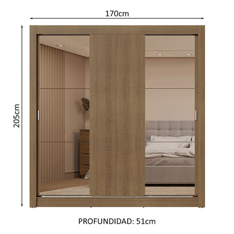 Placard Matrimonial 3 Puertas Corredizas con Espejo Mar...