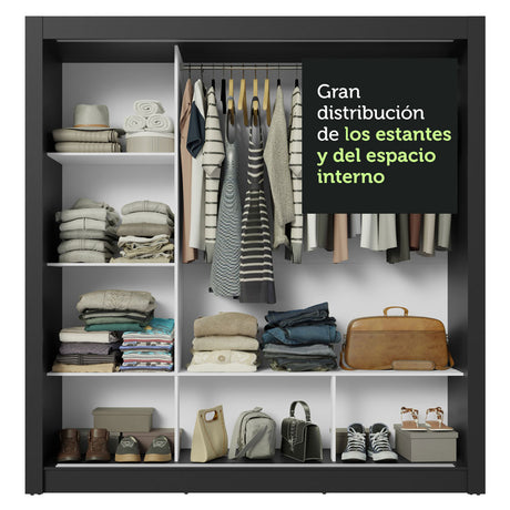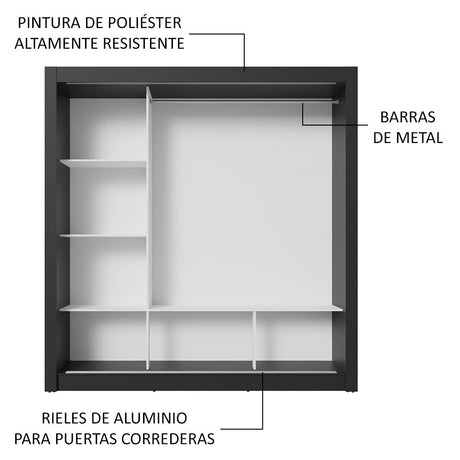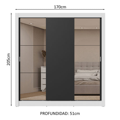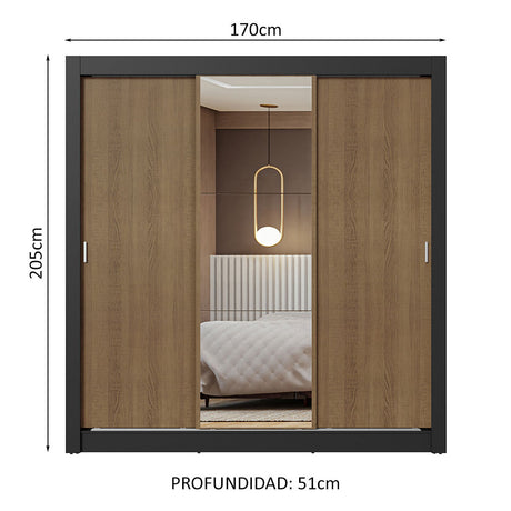 Placard Matrimonial 3 Puertas Corredizas con Espejo Neg...