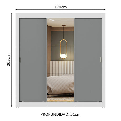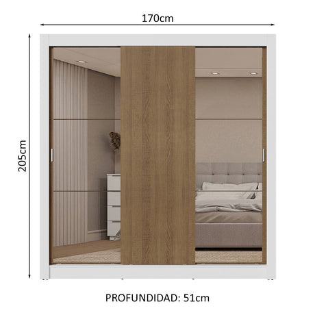 Placard Matrimonial 3 Puertas Corredizas con Espejo Bla...