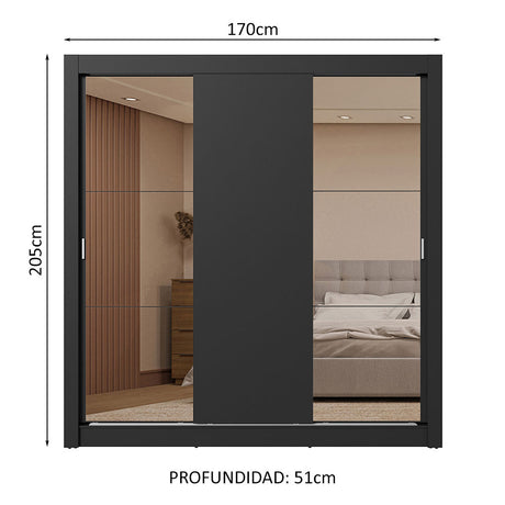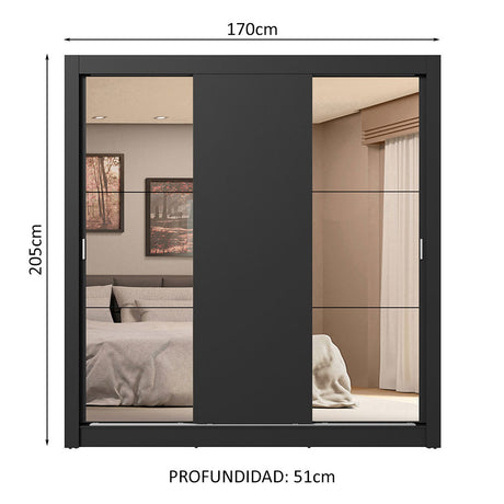 Placard Matrimonial 3 Puertas Corredizas con Espejos 2 ...