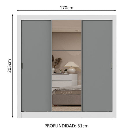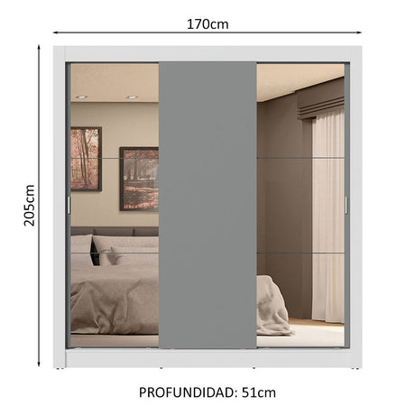 Placard Matrimonial 3 Puertas Corredizas con Espejos Bl...
