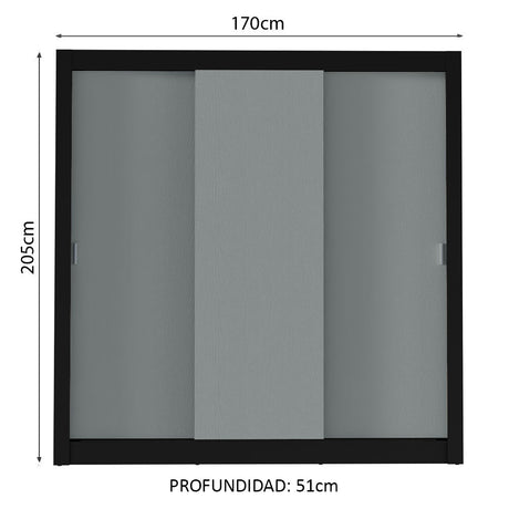 Placard Matrimonial 3 Puertas Corredizas Negro/Gris Nob...