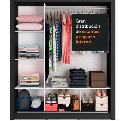 Placard Matrimonial 3 Puertas Corredizas Negro/Blanco S...